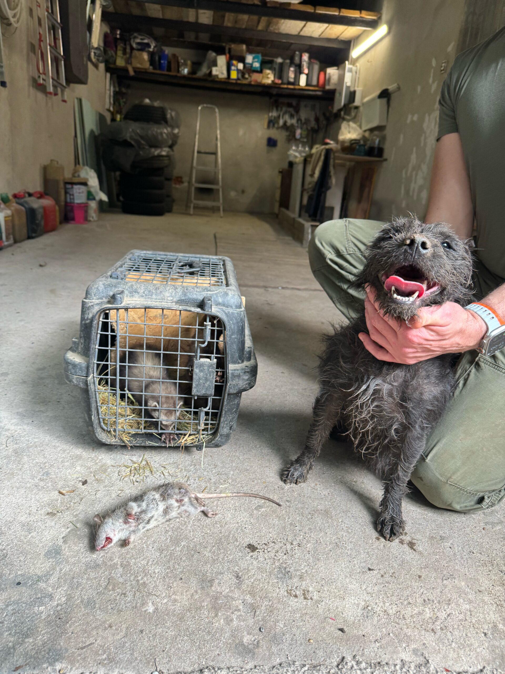 Ha a rágcsáló beszaladt vagy berágta magát az érintett helyiségbe, kellemetlenséget és félelmet kelthet a jelenlévőkben. Elfut, eltűnik a szemek elől, majd az ingatlan tulajdonosa riadtan és tehetetlenül áll a meglepetésszerű esemény előtt. Ilyen és ehhez hasonló helyzetekre kínálunk gyors megoldást, Terriereink és vadászgörényeink segítségével. Kutyáink jól fejlett szaglásának fontos szerepe van a munkavégzés során. A kutyák agyában 40-szer több, a szaglással kapcsolatos idegsejt található, mint az emberben. A kutyák szaglóhámja 18-150 cm2, míg az emberé 2-4 cm2. Ezért a kutyák szaglása kb. 10,000 szer érzékenyebb, mint az emberé. A kutya megkeresi a rágcsálót és a vadászgörény segítségével megfogja az elrejtőzött patkányt. Igen, a görény szintén képes megfogni a patkányt, de legtöbb esetben azonnali menekülésre fogja áldozatát, mivel a patkány szaglása és figyelme kifinomult. Ezáltal jut több szerep az éberen figyelő kutyának, aki a másodperc töredéke alatt elfogja a rágcsálót. Szakemberként, több generációs vadászati tapasztalattal rendelkezünk, ezáltal hatékony megoldást biztosítunk otthona és vállalkozása higiénikus, kártevőmentes környezetéért. A végeredmény egyértelmű, kézzelfogható.